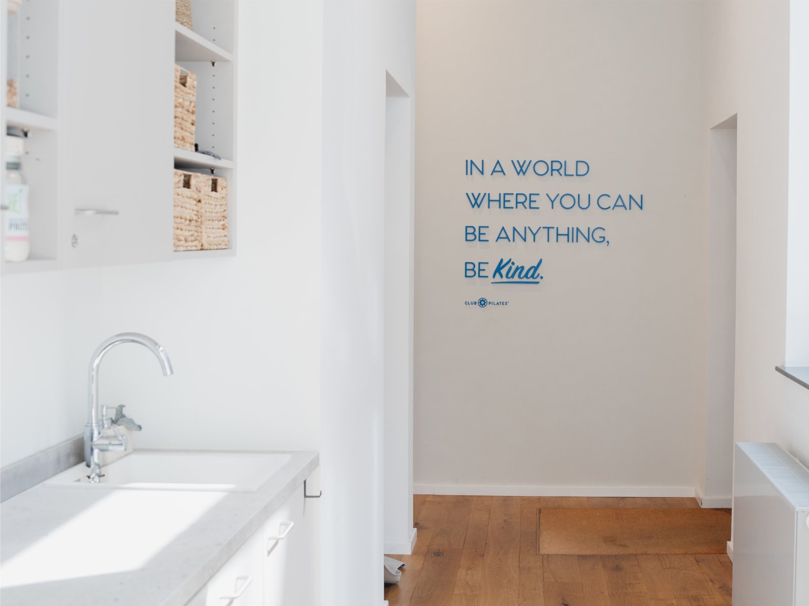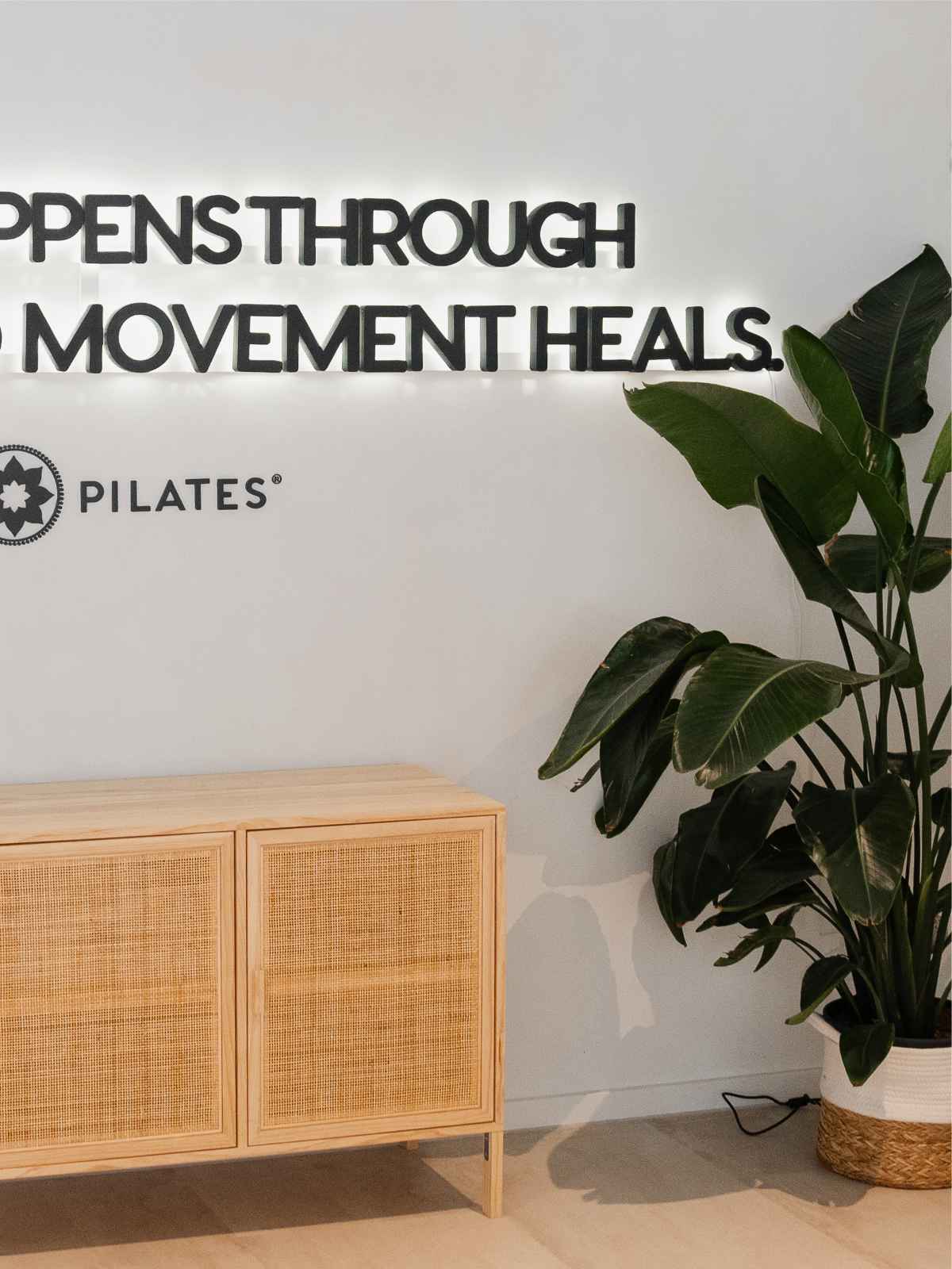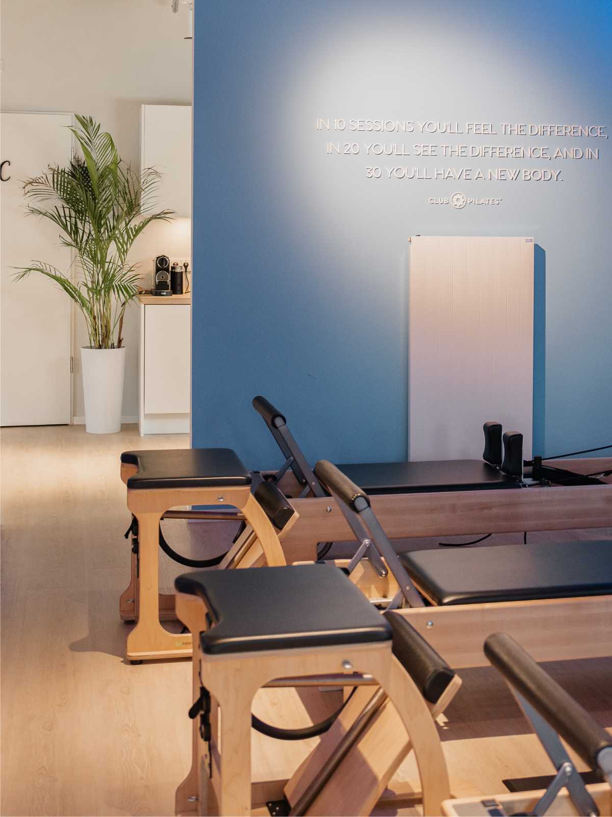Der Schriftzug heißt ankommende Besucher herzlich willkommen, greift einen zentralen Wert der Pilates-Philosophie auf und schafft eine unmittelbare Verbindung zur Marke Club Pilates. Zudem dient er als stimmungsvoller Hintergrund für Bilder und Videos, die während der Wartezeit häufig entstehen.